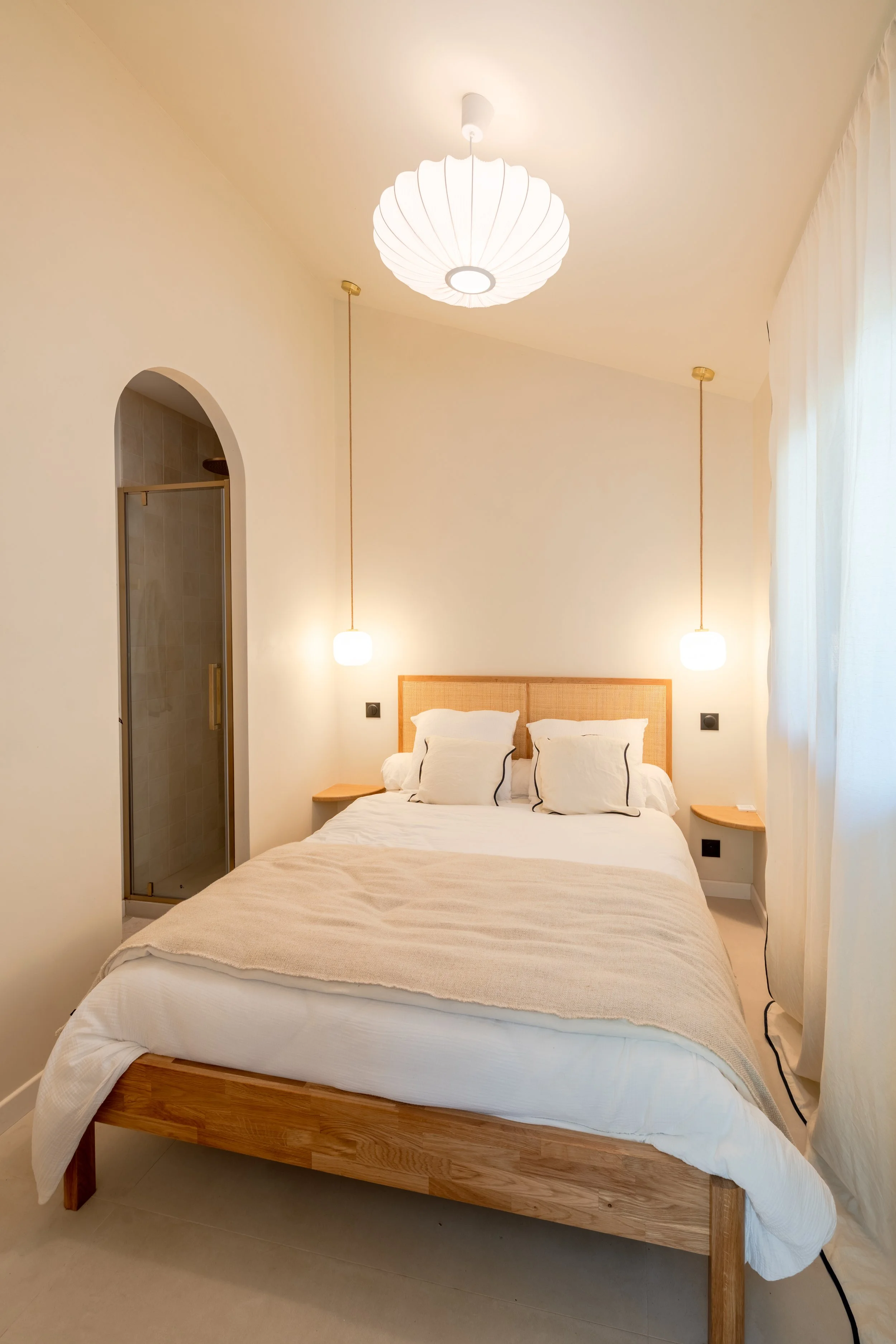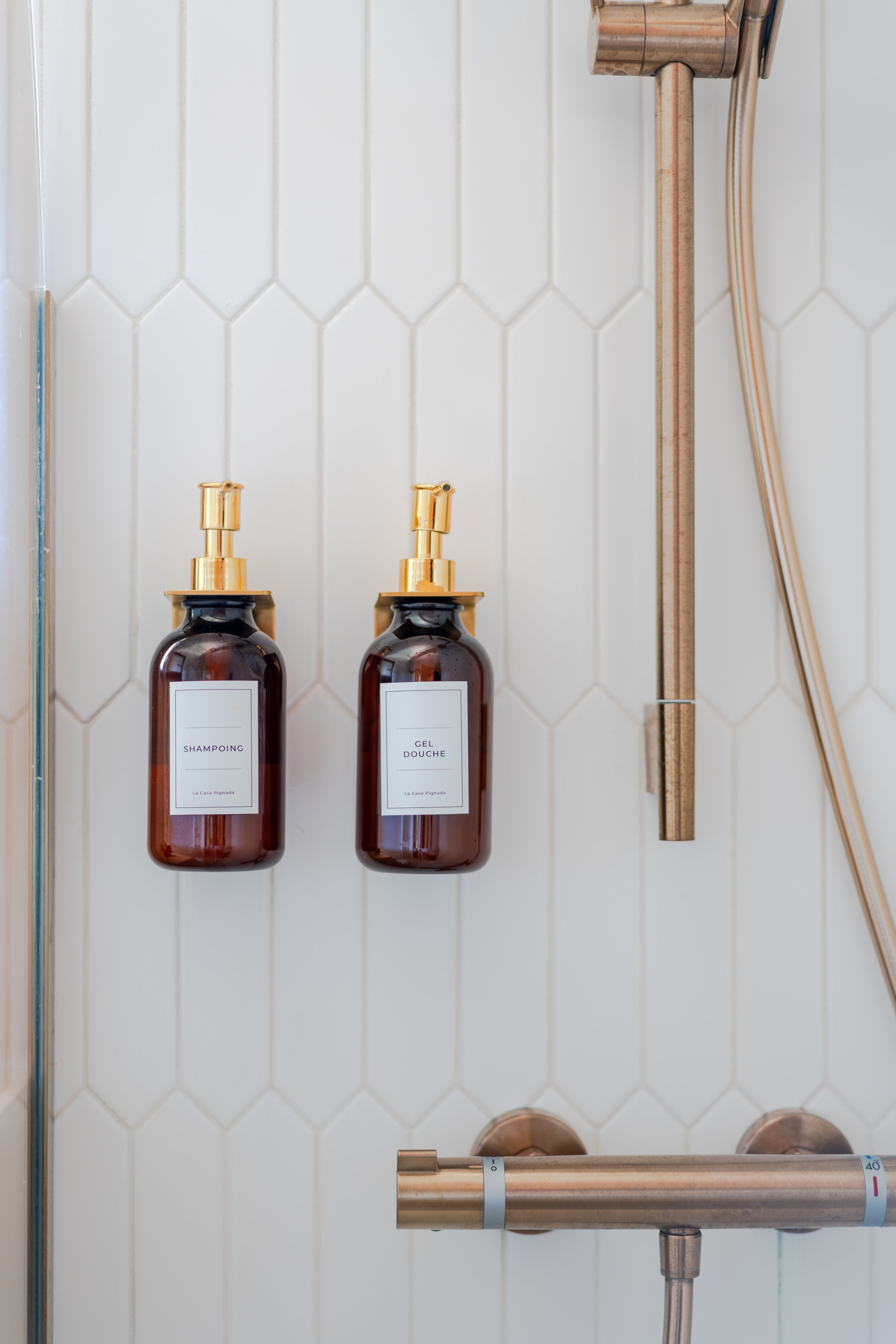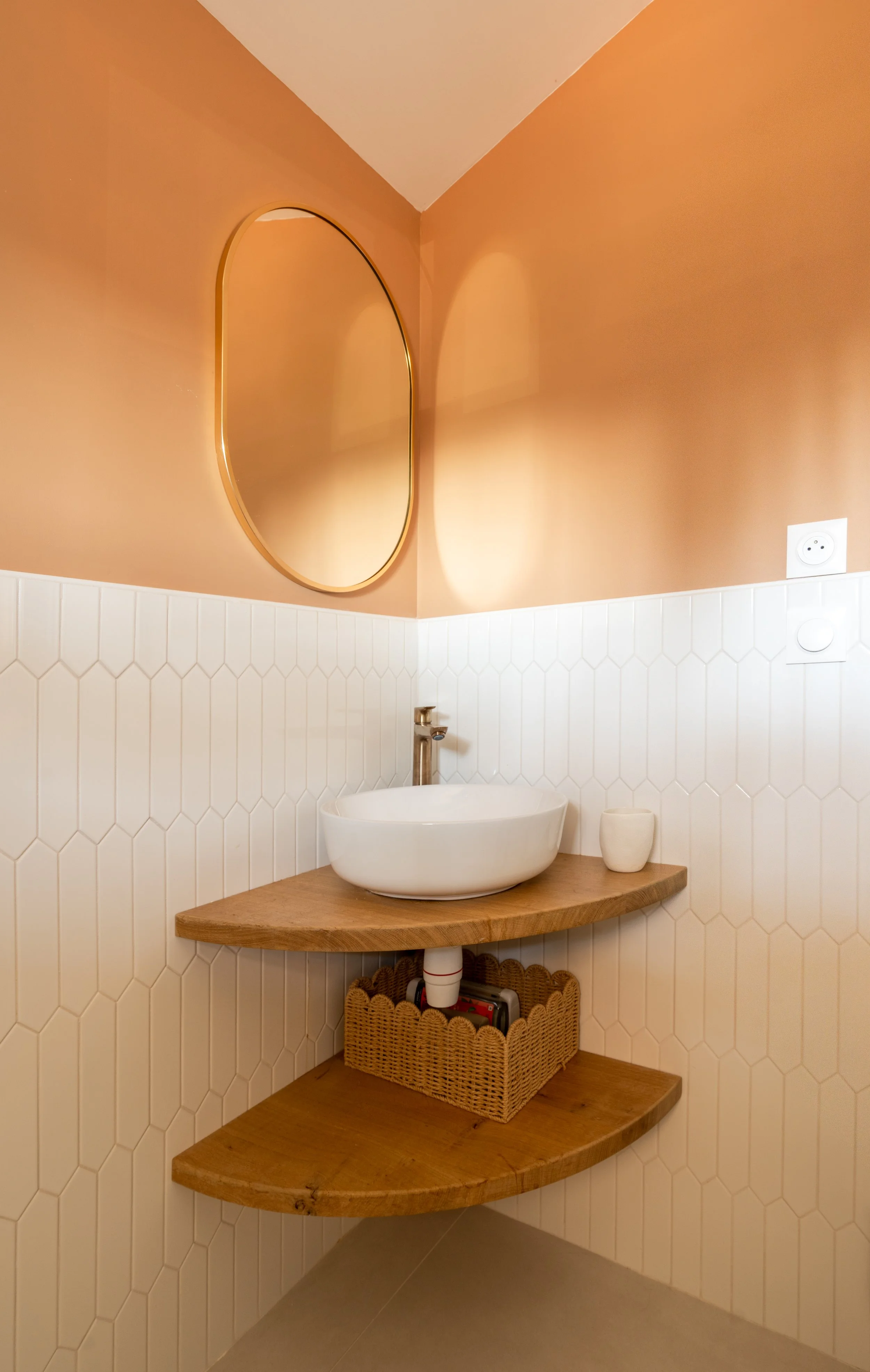 La maison de plain-pied, accueille quatre chambres dont une suite parentale. Comme une balade en forêt, elle offre son lot de surprise et de poésie, il en est ainsi de la petite salle de bain que l’on découvre derrière une porte dissimulée dans le dressing.