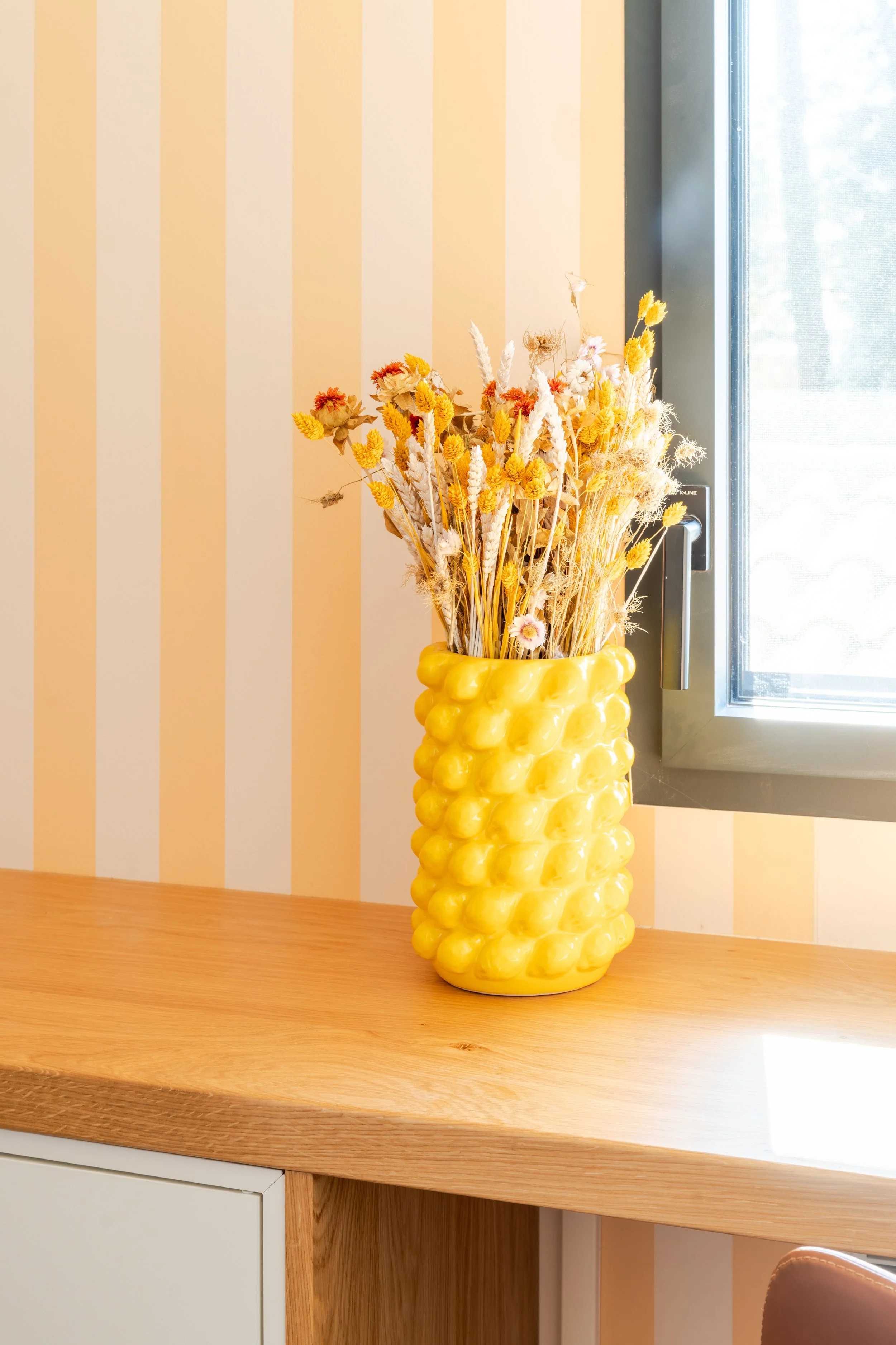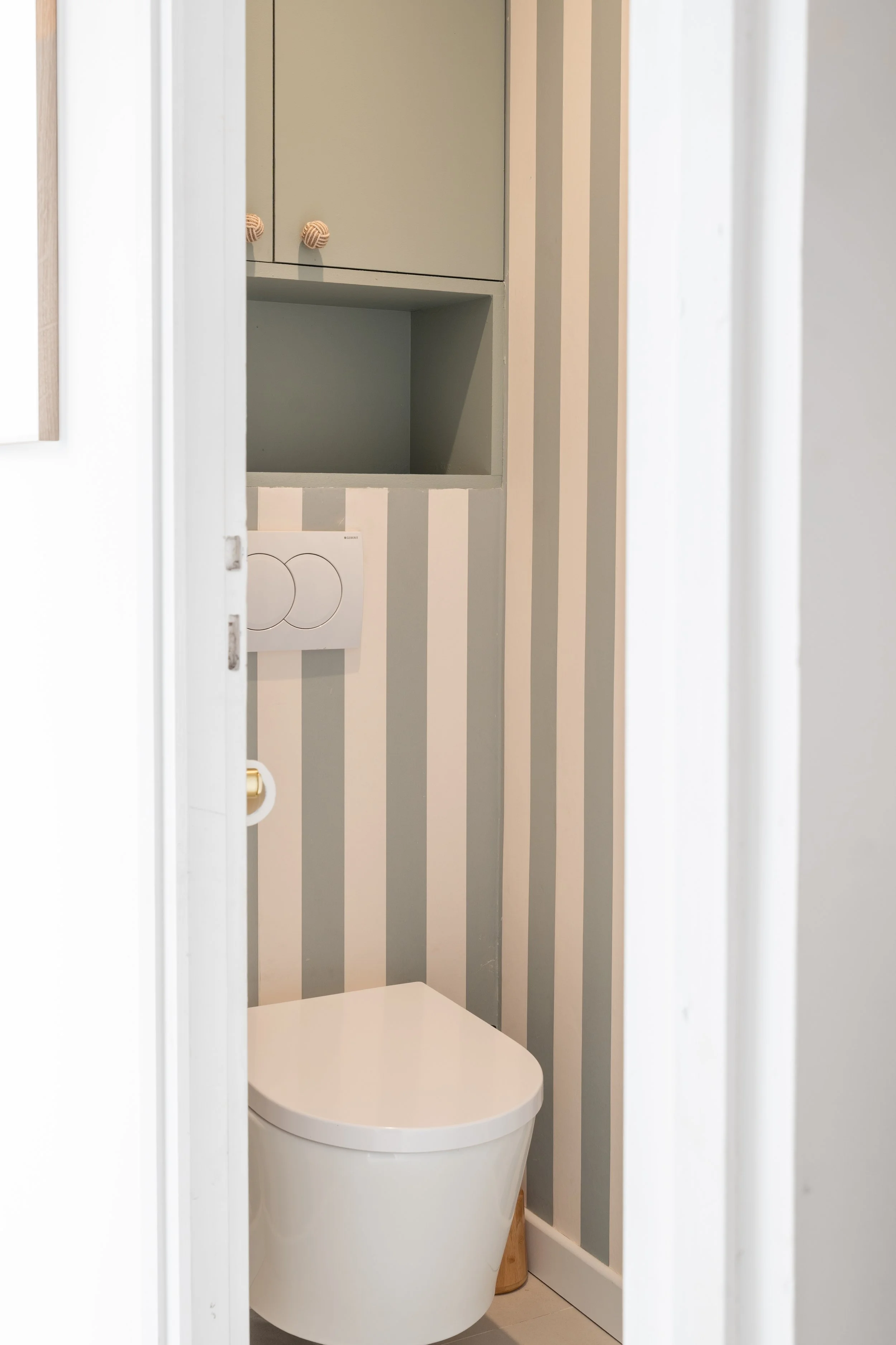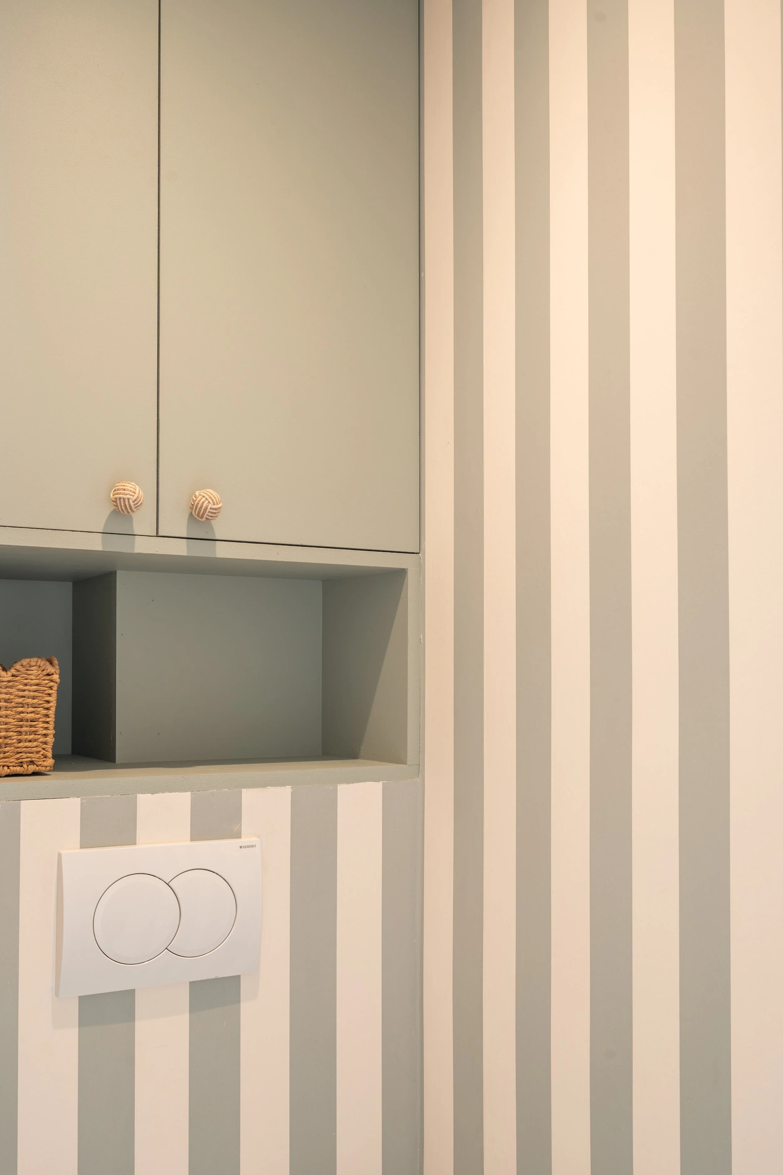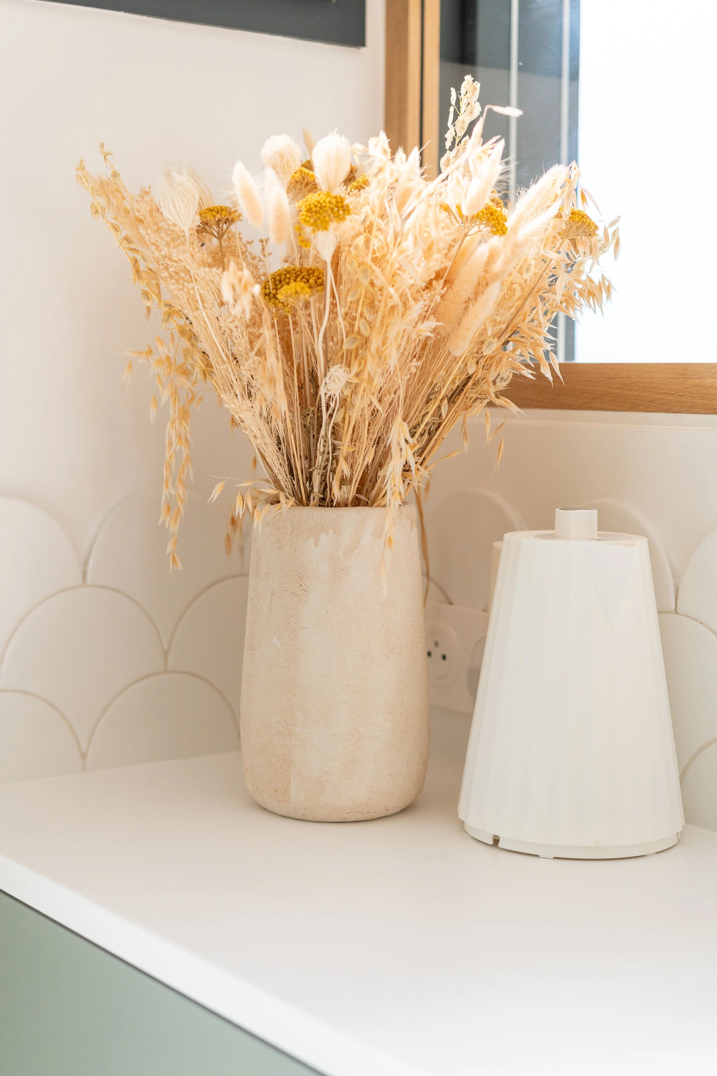 La maison de plain-pied, accueille quatre chambres dont une suite parentale. Comme une balade en forêt, elle offre son lot de surprise et de poésie, il en est ainsi de la petite salle de bain que l’on découvre derrière une porte dissimulée dans le dressing.