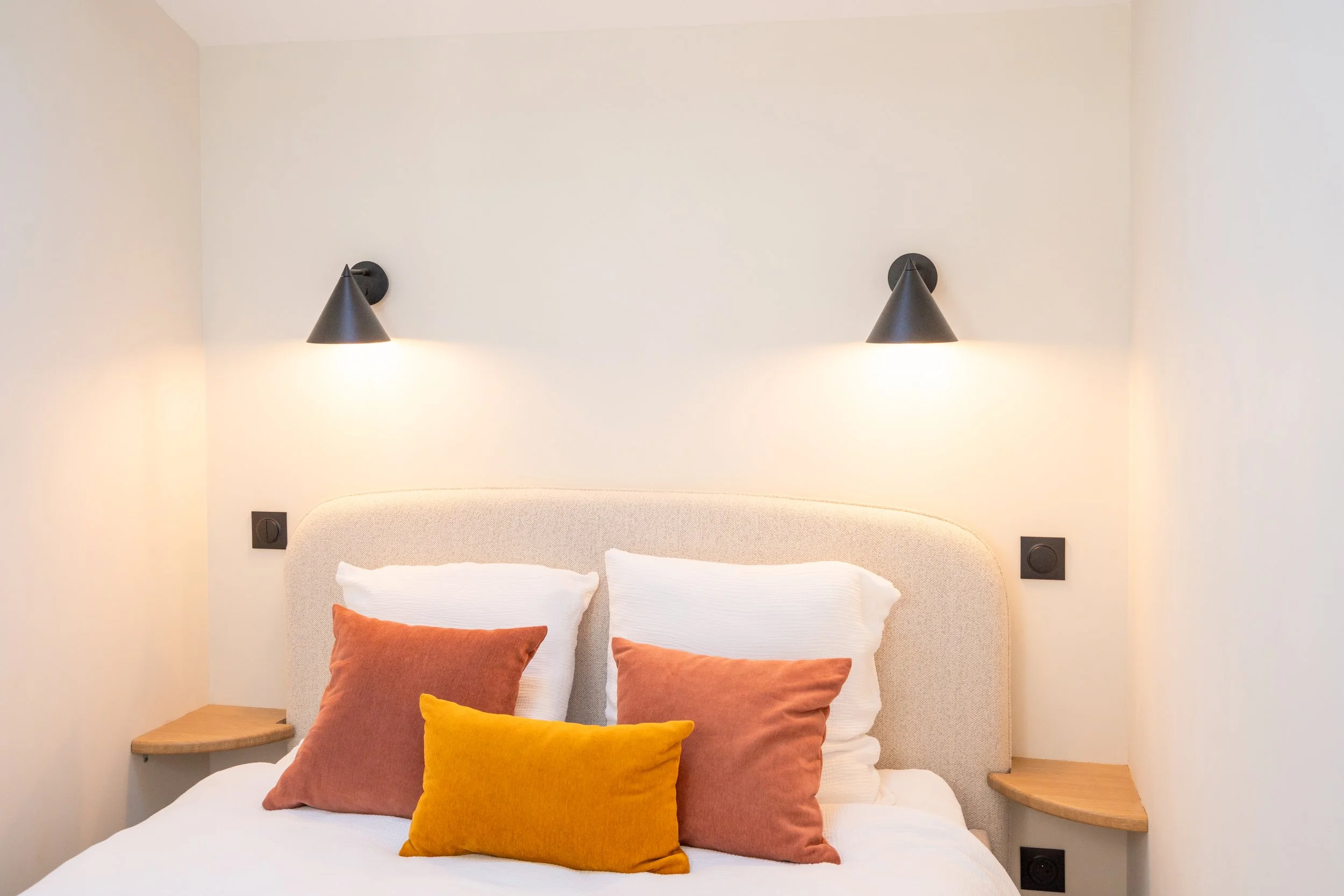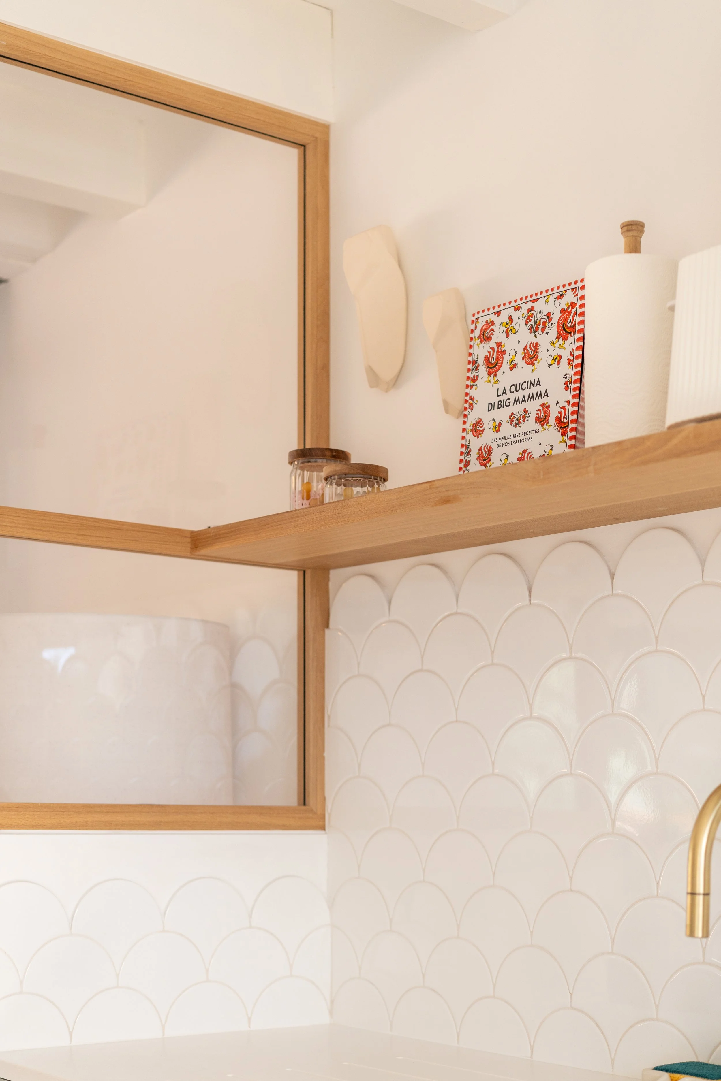 Pour respecter les lieux dans les moindres détails, des poignées en porcelaine, du bois massif, du granit… viennent rappeler qu’ici le temps s’écoule lentement.