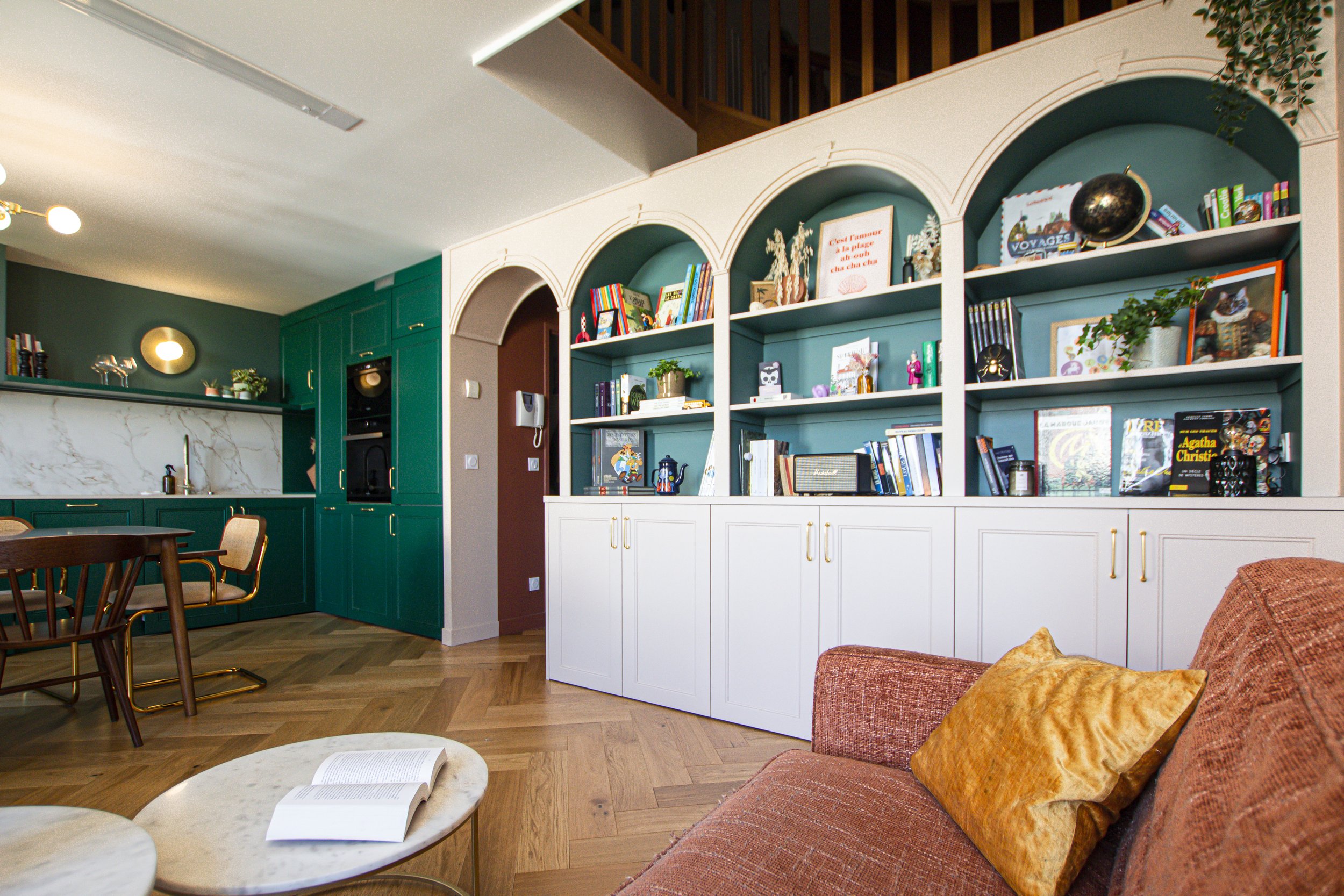 Le projet, qui couvre le champ de la rénovation intégrale de l’appartement autant que de la décoration intérieure, se devait d’être à la hauteur de la personnalité forte et rayonnante de la cliente.