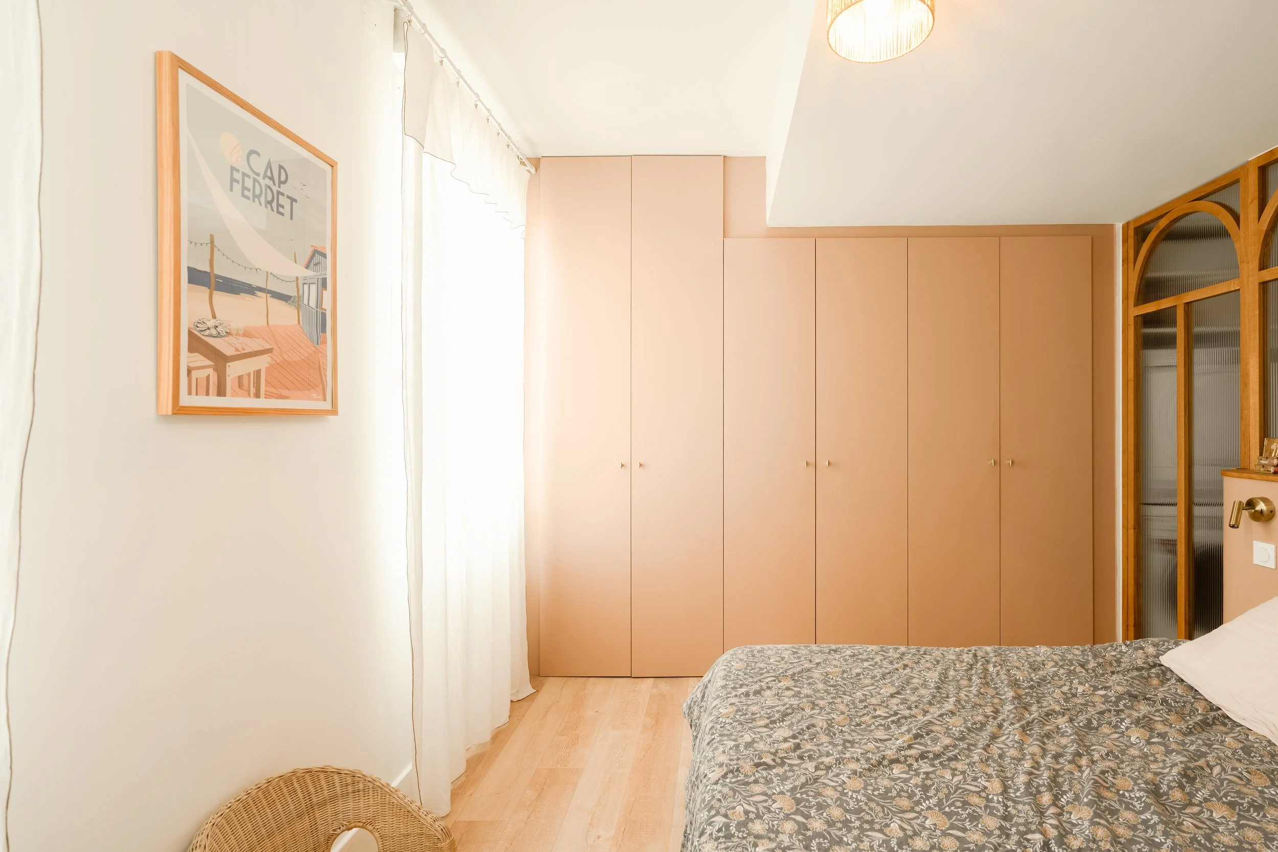 Les ouvertures sur la forêt, l’emploi de matériaux nobles, le recours à une palette de tonalités qui s’inspirent de la légèreté et de la pureté de la nature font de cette rénovation un havre de paix.