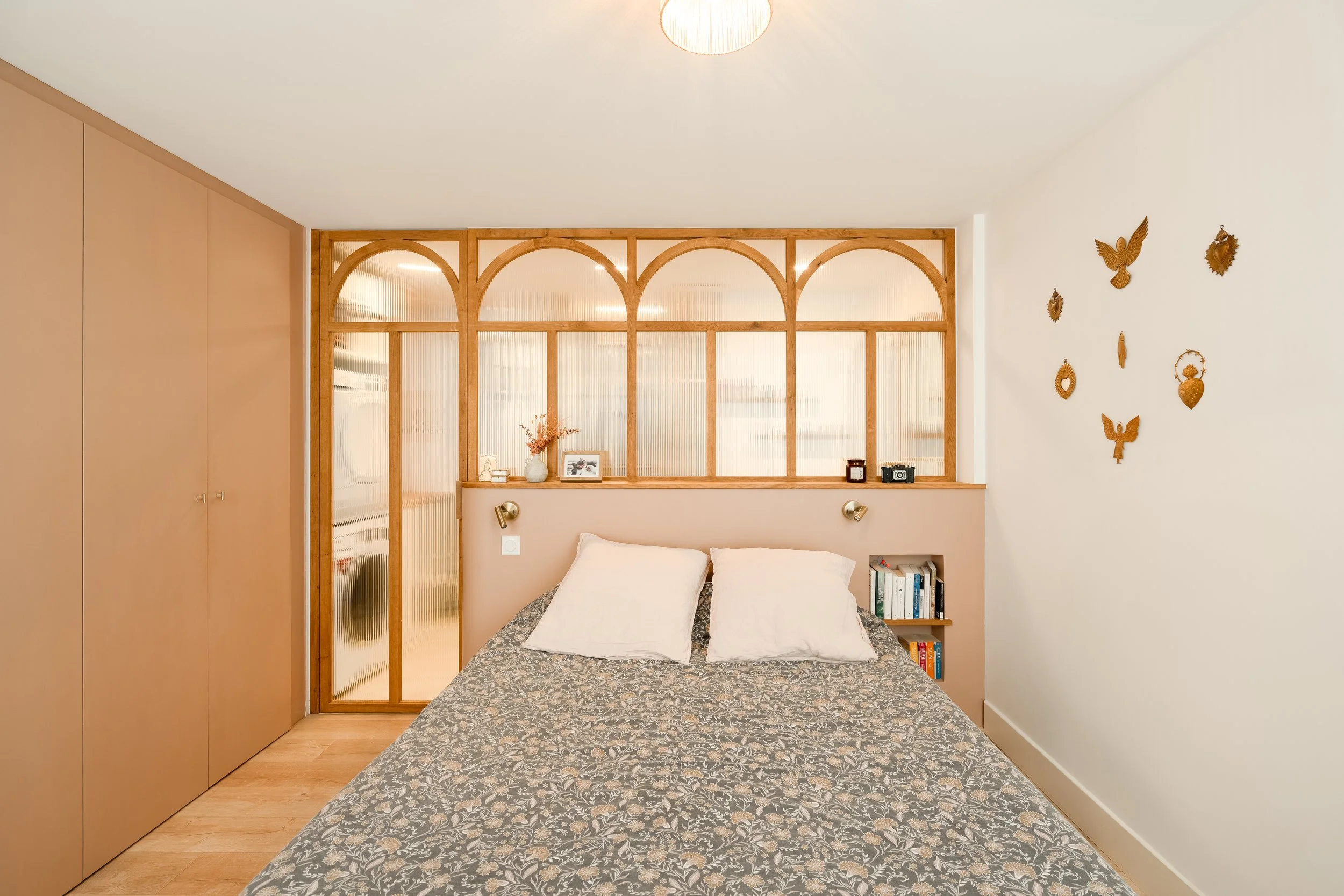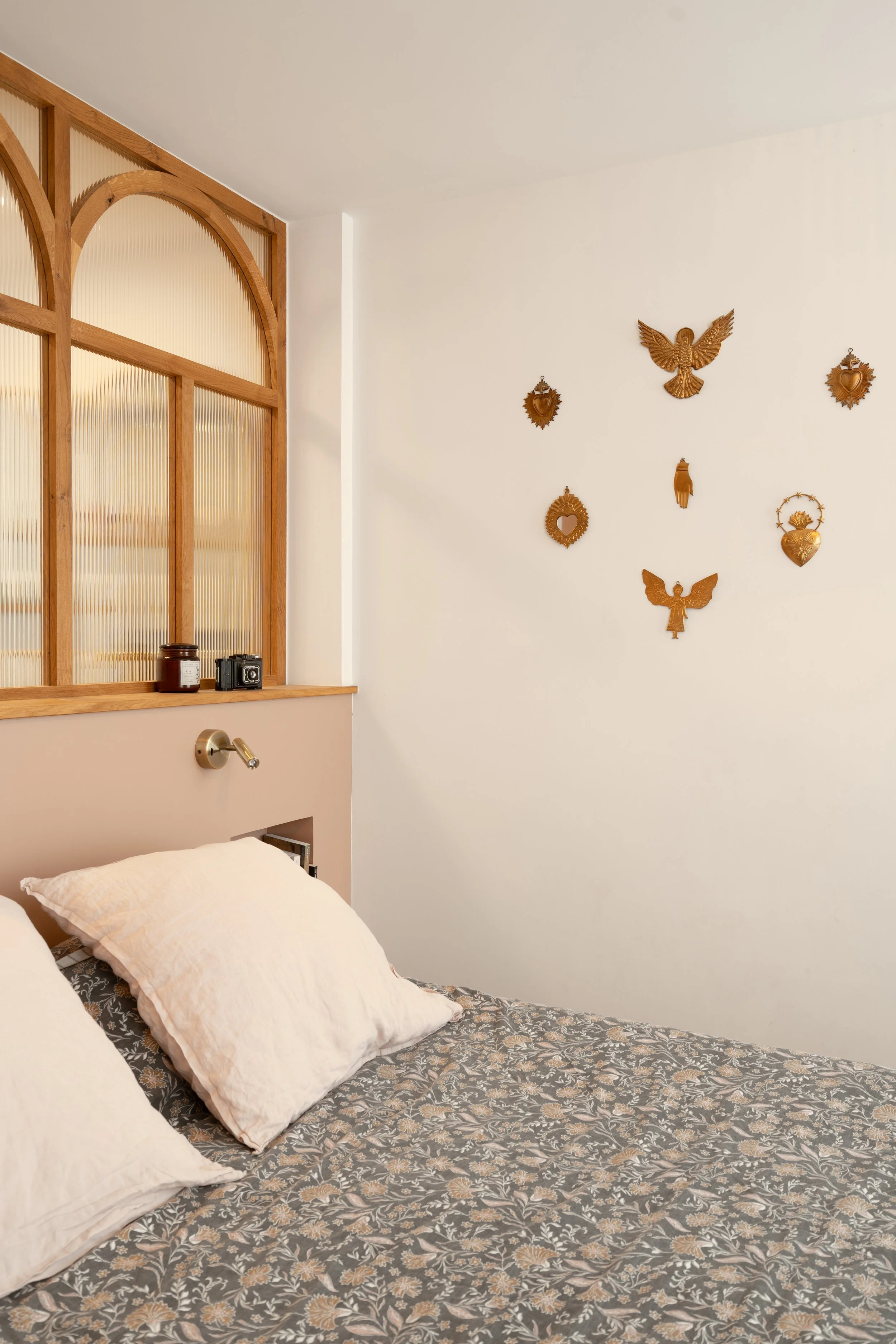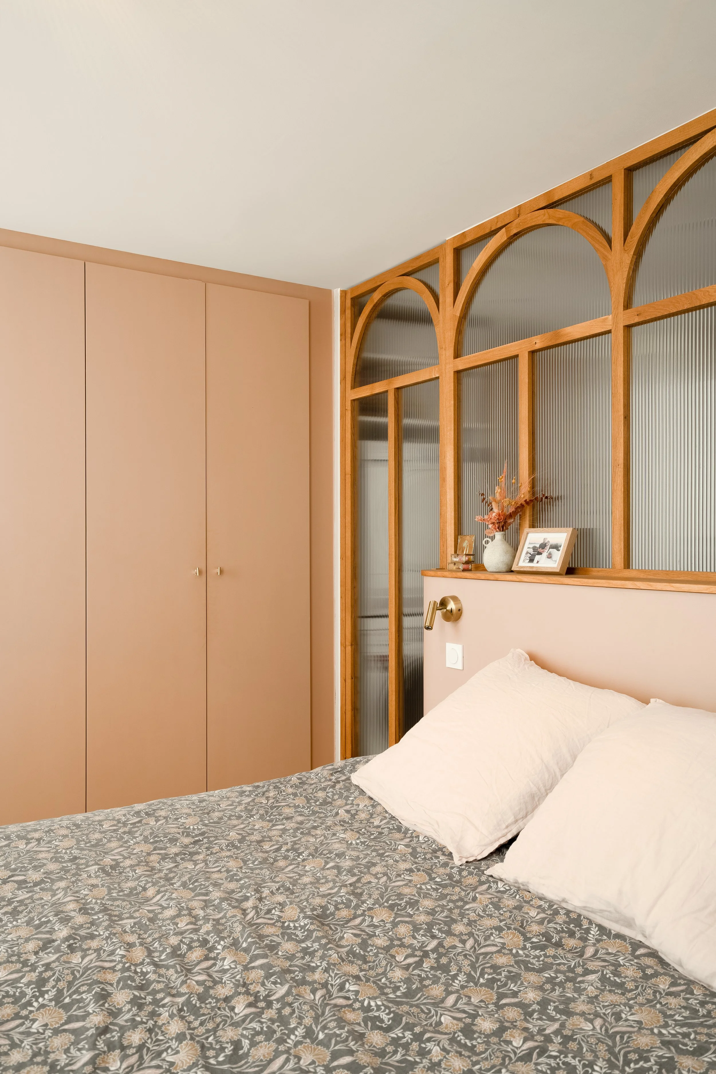 La maison de plain-pied, accueille quatre chambres dont une suite parentale. Comme une balade en forêt, elle offre son lot de surprise et de poésie, il en est ainsi de la petite salle de bain que l’on découvre derrière une porte dissimulée dans le dressing.